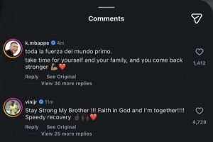 姆巴佩寫道:“把全世界的力量都給你,兄弟。為自己和家人好好休養(yǎng),你會(huì)以更強(qiáng)大的姿態(tài)歸來!”