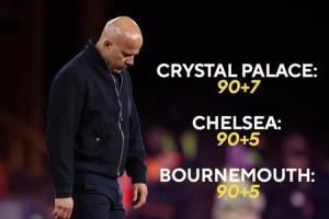 【被絕殺最多紀錄】Opta:利物浦本賽季在英超已有5場比賽因第90分鐘后丟球而失利,是英超歷史上單賽季被絕殺次數最多的球隊。