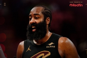 賽后騎士官方曬出本場贏球海報,封面人物為哈登。