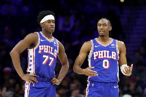 上半場最后一攻,埃奇庫姆反擊追身三分出手,被身后追防的卡特·布萊恩特撞到失去平衡摔倒,背部著地受傷離場,76人官方隨后宣布埃奇庫姆背傷不會(huì)回歸。