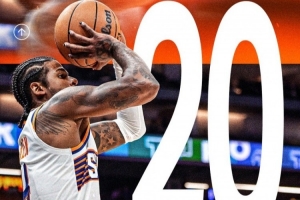 賽后太陽官推發(fā)布杰倫·格林20分?jǐn)?shù)據(jù)海報,并寫道:“杰倫·格林今日得分領(lǐng)跑全隊!”