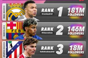 體育資訊03月04日訊 據(jù)Score90統(tǒng)計,在C羅收購了西乙球隊阿爾梅里亞25%的股份后,阿爾梅里亞的社媒粉絲數(shù)瘋漲,如今阿爾梅里亞的IG賬號已經(jīng)擁有超過310萬粉絲,在所有西班牙俱樂部中排名第五。