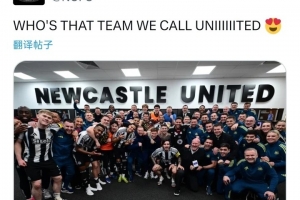 賽后紐卡官推曬出全隊在更衣室慶祝合影,配文調侃道:“誰是那支被稱為‘聯’的球隊。”