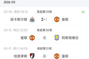 體育資訊03月05日訊 英超第29輪,曼聯(lián)1-2不敵十人紐卡,因維拉本輪同樣輸球,曼聯(lián)仍居第3。