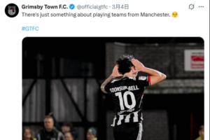 比賽結束后,格林斯比官方曬出比分圖,并且配文:“和來自曼徹斯特的球隊踢比賽真的有點說法的。??”
