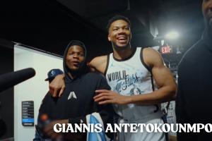 全明星賽期間,愛(ài)德華茲在球員通道與字母哥相遇,兩人擊掌打招呼后,勾肩搭背交談著: