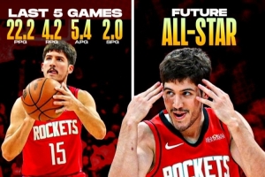 里德·謝潑德逐漸展現(xiàn)未來全明星潛質(zhì),火箭新星正在崛起。在最近幾場比賽中,他表現(xiàn)火熱,展現(xiàn)了得分能力、自信以及出色的進攻感覺,這些正是他被高度看好的原因。如果這種狀態(tài)持續(xù)下去,火箭可能將見證一位真正新星的爆發(fā)。