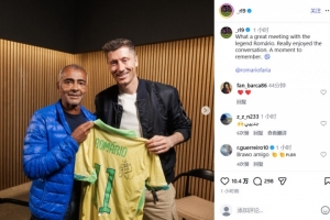 巴薩前鋒萊萬顯然對和羅馬里奧會面非常興奮,他在社交媒體上曬出了兩人的合照并寫道:與傳奇球星羅馬里奧的會面真是太棒了!我們的對話非常愉快,這真是一個難忘的時刻。
