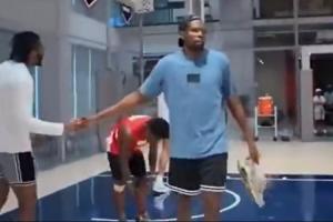 比賽打著打著,杜蘭特嫌棄Speed上籃不中,直接脫下了球鞋選擇退賽,他表示:“這個上籃我真是受不了了。等我有了更強(qiáng)的隊(duì)友我會回來的。”