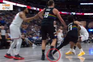 次節末,掘金后衛穆雷防守沉退時左腳不慎踩到隊友約基奇,左腳踝向外側翻連續扭傷。隨后穆雷捂著腳踝痛苦倒地,現已回到更衣室。