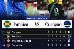 體育資訊11月14日訊 北美預選第三階段第5輪, 庫拉索客場7-0狂勝百慕大群島,牙買加客場1-1遭特立尼達和多巴哥絕平。