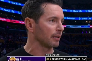 轉播方曬出數據:湖人領先結束上半場時,本賽季戰績24勝2負,聯盟最佳。