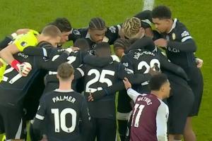 比賽下半場,落后的主隊(duì)維拉正急于開球時,切爾西眾將集體來到中圈,將球團(tuán)團(tuán)圍住,隨后一同加油喊話,維拉球員對此很是不滿,不斷向主裁判投訴這一行為。國外解說員也表示,這一舉動“有些荒唐”。