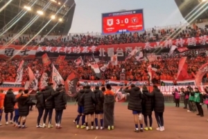 體育資訊3月7日訊 新賽季中超首輪主場3-0完勝遼寧鐵人后,山東泰山全隊與現場球迷進行了互動。