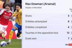 據天空體育統計,道曼本場比賽多項數據領跑,只可惜未能取得一線隊首球。