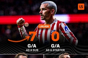 格列茲曼此役替補出場送出助攻,幫助馬競取勝,據媒體統計,格列茲曼本賽季西甲替補出場參與7粒進球,首發參與0球。