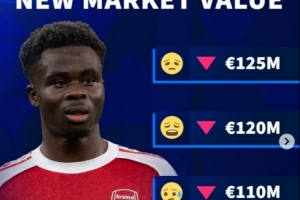 體育資訊3月8日訊 德轉近期將更新英超球員身價,并預熱薩卡身價將在下次更新后下跌。