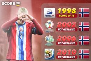 哈蘭德和挪威隊距離重返世界杯決賽圈只是一步之遙了,上一次他們在世界杯亮相還是1998年。這個賽季都目前為止,“魔人布歐”各項賽事已經打進30球,他們會成為美加墨的黑馬么?