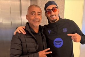 體育資訊3月8日訊 巴薩球星拉菲尼亞在個人社媒曬出一張與傳奇球星羅馬里奧的合照,配文寫道:“很高興能在這里遇到你!”