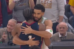 比賽期間哈登和剛剛復出的塔圖姆進行了簡短交流,當被問到兩人說了什么時,哈登說:“我只是告訴他,當你看到一個如此年輕、如此有天賦,并且已經取得了這么大成功、贏得了總冠軍的球員,然后突然遇到了挫折,他還能保持著‘什么都無法阻擋我’的心態回歸,復出第一場就打得很好,今晚也打得很好,這本身就是一種鼓舞。”