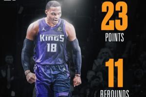 本場比賽,國王球星拉塞爾·威斯布魯克發揮出色,不僅在三分線外保持著高效,組織端也亮點十足,頻頻送出妙傳,喂得雷諾心花怒放!此外,失誤控制方面他也表現的極其出色。