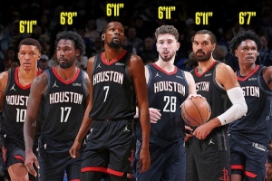 當你的球隊擁有申京和杜蘭特這樣的球員時,這可能很難想象。然而,由于陣容的構建方式,火箭隊在場上擁有許多長臂球員,能夠整場比賽給對方進攻球員帶來困擾。超過一半的球員臂展達到7英尺(2米13)。