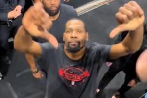 杜蘭特與球迷互倒豎大拇指 嬉戲打鬧