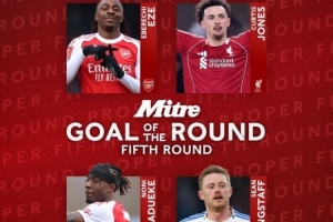 體育資訊3月10日訊 足總杯公布賽事第五輪最佳進球候選,埃澤、柯蒂斯·瓊斯、馬杜埃凱和肖恩·朗斯塔夫的進球入選。