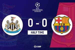 上半場傷停補時1分鐘,半場結束,巴薩暫0-0紐卡。