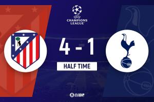 體育資訊3月11日訊 北京時間3月11日1:30,歐冠1/8決賽首回合,馬德里競技在利雅得航空大都會球場迎戰(zhàn)托特納姆熱刺。上半場,熱刺門將金斯基連送大禮后導(dǎo)致被換下,略倫特、格列茲曼、阿爾瓦雷斯和勒諾爾芒先后為馬競進球,波羅扳回一城,馬競半場4-1領(lǐng)先熱刺。