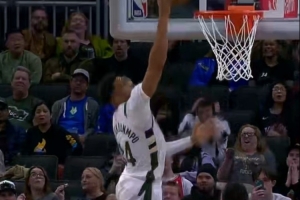 GIF-字母哥反擊打布克扣籃沒扣進,自己又補進