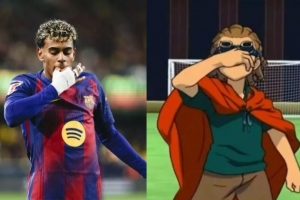 亞馬爾補時階段點射絕平,賽后西班牙六臺記者詢問他吹口哨的慶祝動作是否與動漫《閃電十一人》有關(guān),亞馬爾搖頭予以否認。