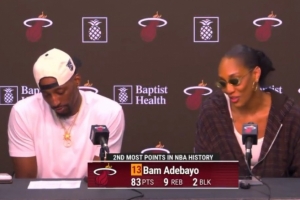 賽后,女友阿賈·威爾遜和阿德巴約一起接受了記者采訪,她說道:“上帝對他特別眷顧,上帝不會對巴姆開玩笑。”
