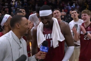 賽后,隊友鮑威爾客串了一把記者,問到:“當聽到自己的名字與張伯倫(100分)、科比(81分)比肩,你什么感受?”