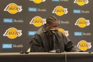 體育資訊3月11日訊 NBA常規(guī)賽,湖人120-106擊敗森林狼,賽后艾頓參加新聞發(fā)布會(huì)。