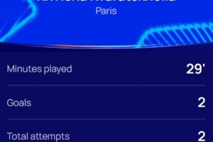 本場(chǎng)比賽巴黎前鋒克瓦拉茨赫利亞替補(bǔ)登場(chǎng)29分鐘梅開(kāi)二度,并送出助攻,賽后當(dāng)選歐冠官方評(píng)選出的本場(chǎng)最佳球員。