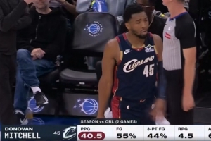 本賽季面對魔術(2場),米切爾場均40.5分4.5籃板6.5助攻,投籃命中率55%,三分命中率44%