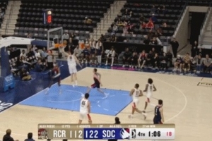 GIF-楊瀚森先轉身送釘板大帽 隨后貼防逼迫對手出現失誤