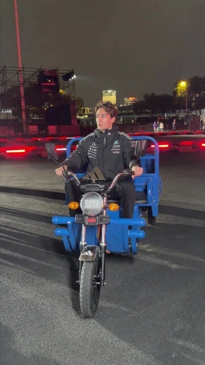 太會整活了!拉塞爾在中國騎“三蹦子”