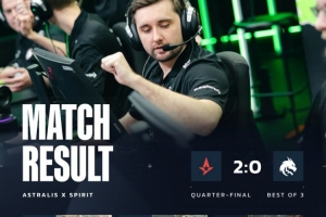 體育資訊3月14日訊 CS2大賽EPL S23來到1/4決賽,Spirit遭Astralis兩圖橫掃慘遭淘汰,A隊(duì)進(jìn)軍半決賽對(duì)陣Aurora!