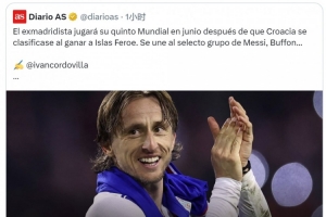 40歲克羅地亞中場莫德里奇將迎來自己的第5屆世界杯,西班牙媒體《阿斯報》主編、皇馬球迷龍賽羅轉發相關新聞,配文:“永恒的莫德里奇,偉大的盧卡(莫德里奇)!”