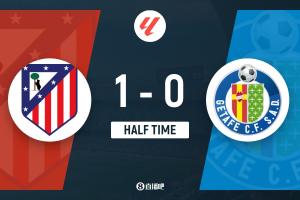 上半場(chǎng)補(bǔ)時(shí)2分鐘,馬競(jìng)1-0赫塔菲。