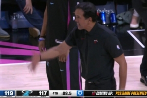 這球怎么看?熱火落后4分拉松發球被吹5秒違例 斯波場邊直接氣炸