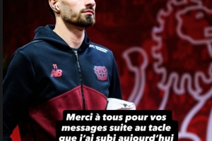 泰里耶社媒報平安,他寫道:“感謝大家在我今天對陣拜仁的比賽中被鏟球后發來的關心問候,我目前感覺良好,傷勢沒有大礙。”
