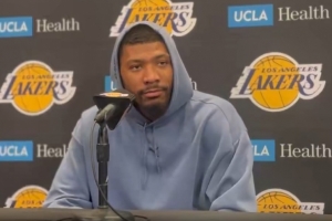 體育資訊3月15日訊 NBA常規賽,湖人主場127-125加時險勝掘金,賽后斯瑪特接受采訪。