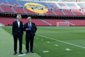 拍攝結(jié)束時,在球場邊線附近,緊挨著替補(bǔ)席,在各自重新與親信隨從會合后,他們用堅定地握手道別,互相祝福好運(yùn)。今晚,兩人中只有一位將成為巴塞羅那足球俱樂部的主席。