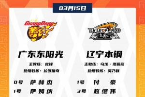 體育資訊3月15日訊 今天晚上7點35分,廣東男籃將在主場迎戰遼寧男籃。