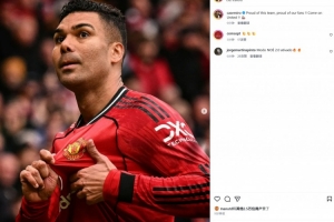 本場比賽卡塞米羅先拔頭籌,賽后他也在個人社媒曬出自己手指曼聯隊徽的慶祝動作,配文寫道:“為我們的球隊感到驕傲,為我的球迷驕傲!加油紅魔!”