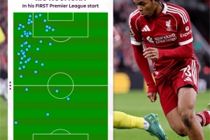 體育資訊3月16日訊 恩古莫哈在利物浦1-1熱刺的比賽中首次在英超首發,英超官方曬出了他的熱區圖。