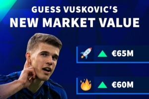 德轉(zhuǎn)預(yù)熱武什科維奇身價(jià)變動(dòng)(目前4000萬(wàn)歐):